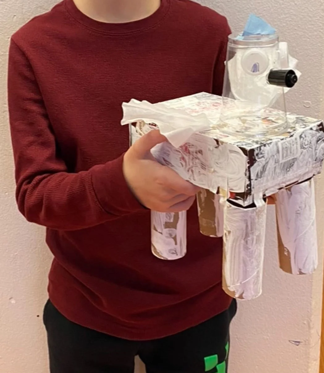 Students learned the definition of “form” in Art. They sketched and labeled their imaginary animal design. They sculptured a 3D animal using recycled materials then added Acrylic paint.