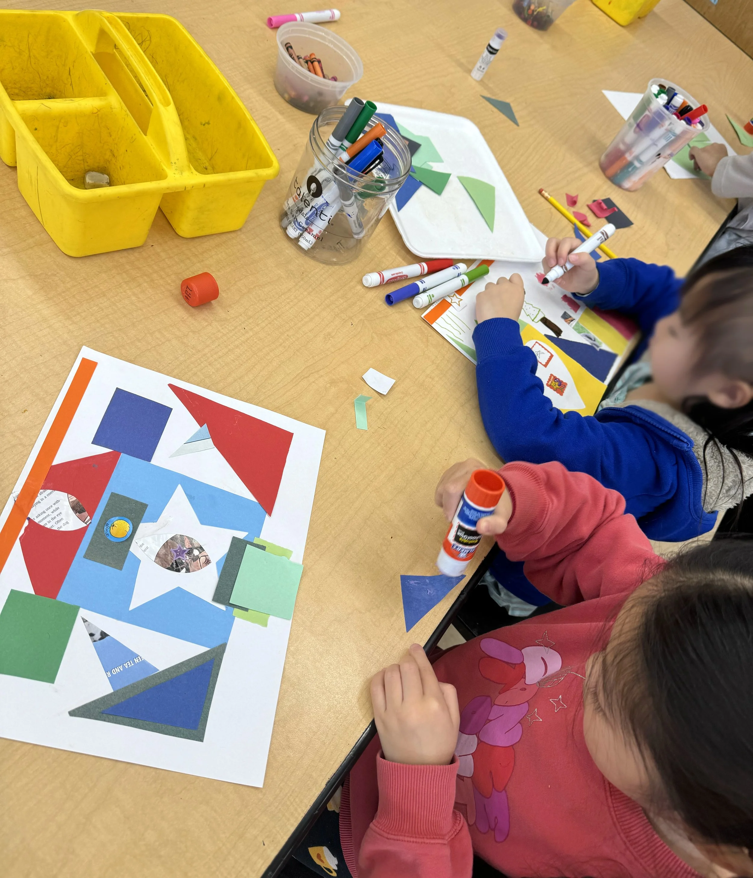 - Pre-teach vocabulary (cut, glue, shape, collage) with visuals